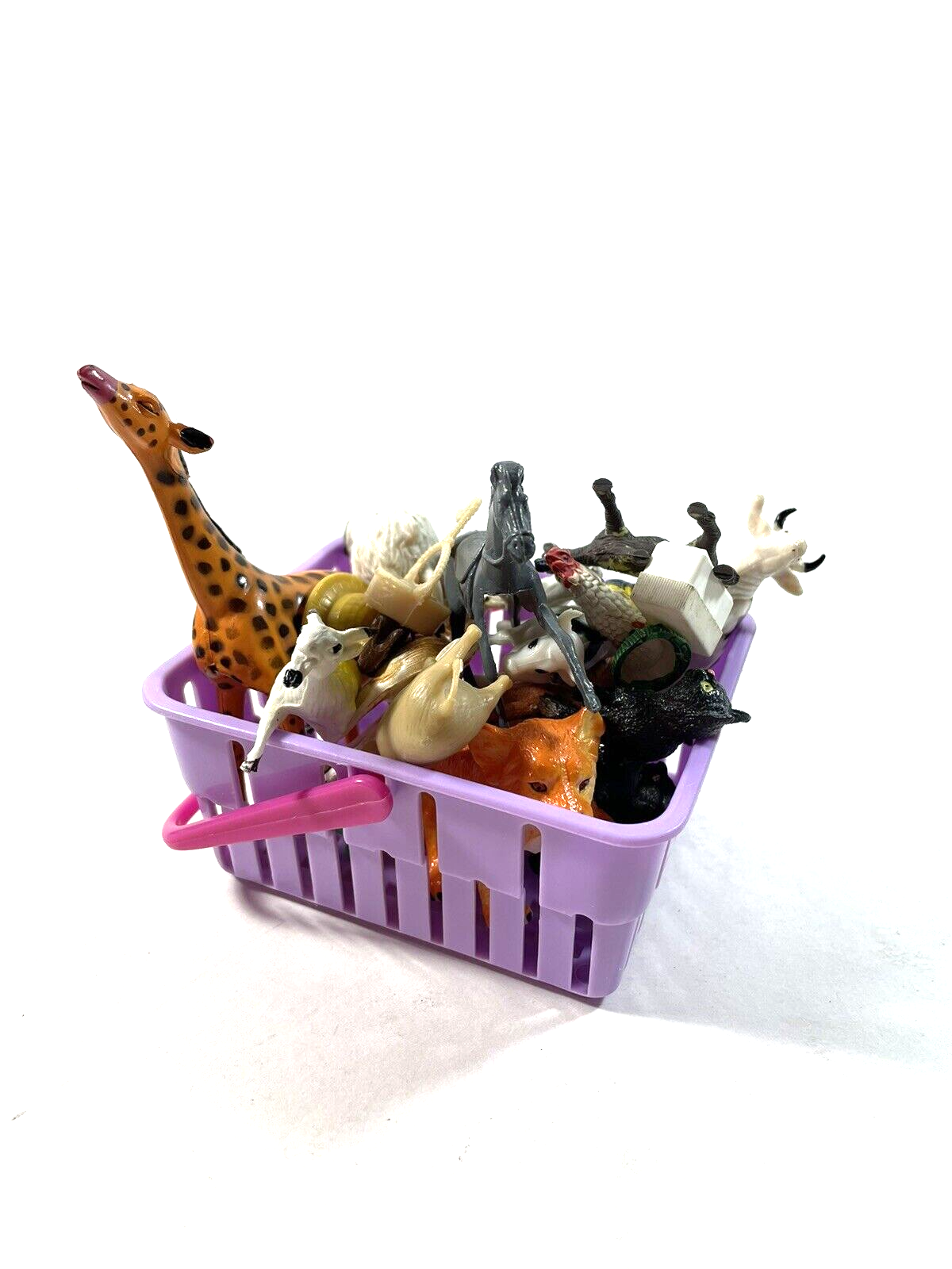 Assorted Animal Figure Toy Lot 20 Pieces Small Plastic Farm Zoo Pets In Basket Ebay